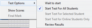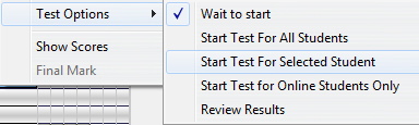 The Start Test for Online Students Only option is a variation of Start test for all Students