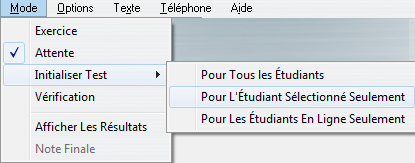Le mode d'une activité ne peut être changé que lorsque le Tracker de l'activité est ouvert. Pour change de mode, sélectionnez Mode puis Exercice Ou Initialiser Test dans la barre de menus supérieure.